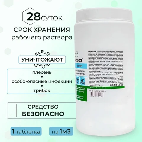 Средство дезинфицирующее 1 кг АЛМАДЕЗ-ХЛОР, таблетки 300 шт., АЛ-ХТ409