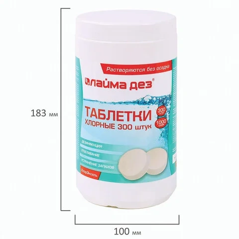 Средство дезинфицирующее Таблетки хлорные 300 штук, 1 кг, банка, ЛАЙМАДЕЗ, 607913