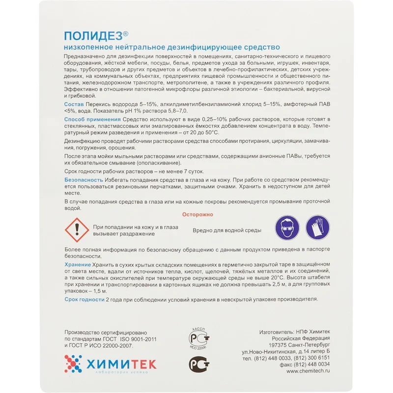 Дезинфицирующий концентрат Химитек Полидез 5л, для поверхностей, 010106