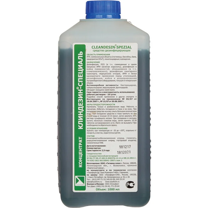 Дезинфицирующее средство «Клиндезин Специаль» 1 л (концентрат).