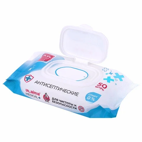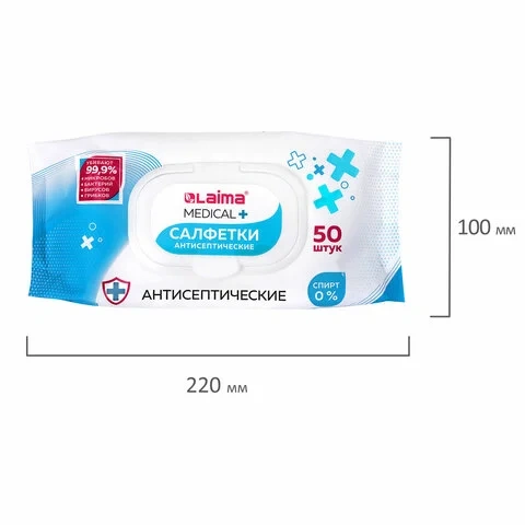 Дезинфицирующие салфетки бесспиртовые, для рук и любых поверхностей, 50 шт., LAIMA MEDICAL, 608764