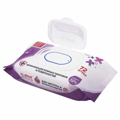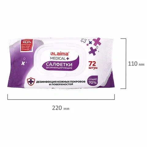 Дезинфицирующие салфетки спиртовые (70%), для рук и любых поверхностей, 72 шт., LAIMA MEDICAL, 60876