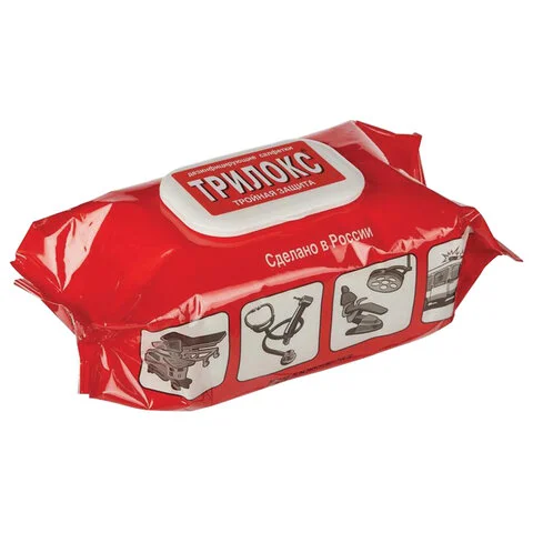 Готовые к применению влажные дезинфицирующие салфетки из белого нетканого материала, равномерно пропитанные дезинфицирующим раствором ТРИЛОКС с минимальным эффективным содержанием спирта для быстрой дезинфекции небольших по площади поверхностей и оборудования.