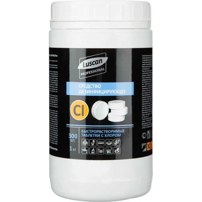 Дезинфицирующее средство Luscan Professional ХлорЭксель хлорные таблетки 1 кг (300 штук по 3.3 г)