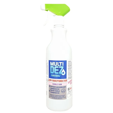 Мультидез-Тефлекс - для мытья и дезинфекции поверхности обладает антимикробной активностью в отношении бактерий (включая туберкулез), вирусов (гриппа, в т.ч. птичьего, свиного и т.д. полиомиелита, энтеровирусы, гепатиты, ВИЧ-инфекция, атипичная пневмония), грибов (рода Кандида, Трихофитон, плесневые грибы).