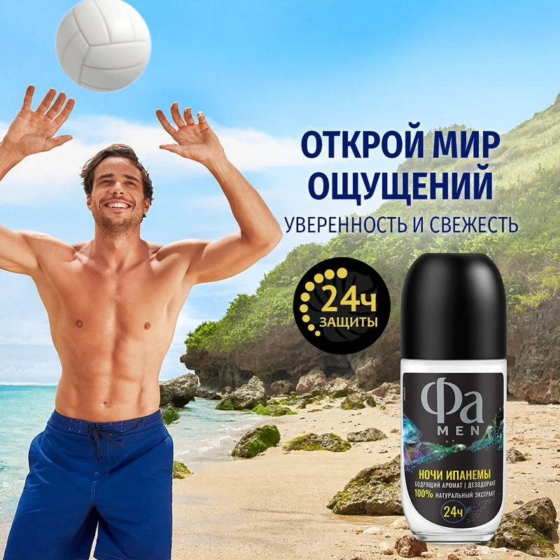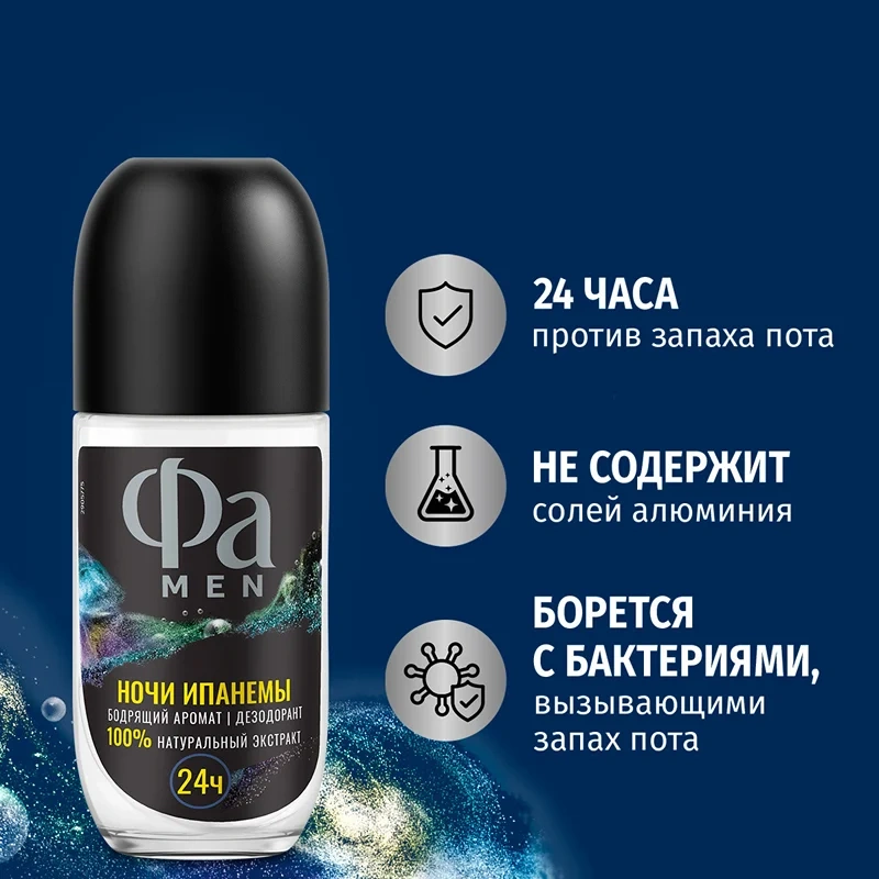 Дезодорант-антиперспирант Фа Men Ночи Ипанемы роликовый, 50мл