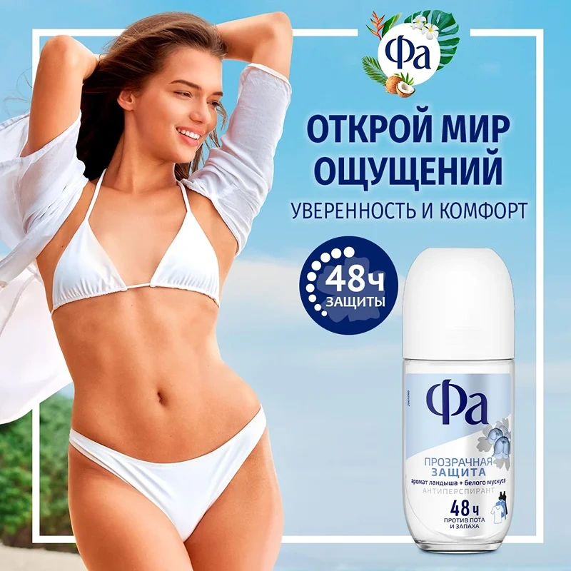 Ощути надежную защиту мужских дезодорантов от Фа. Твой секрет уверенности в себе! Роликовый дезодорант-антиперспирант. Надежная защита до 48 часов с освежающим ароматом. Против пятен. Дерматологически протестирован.