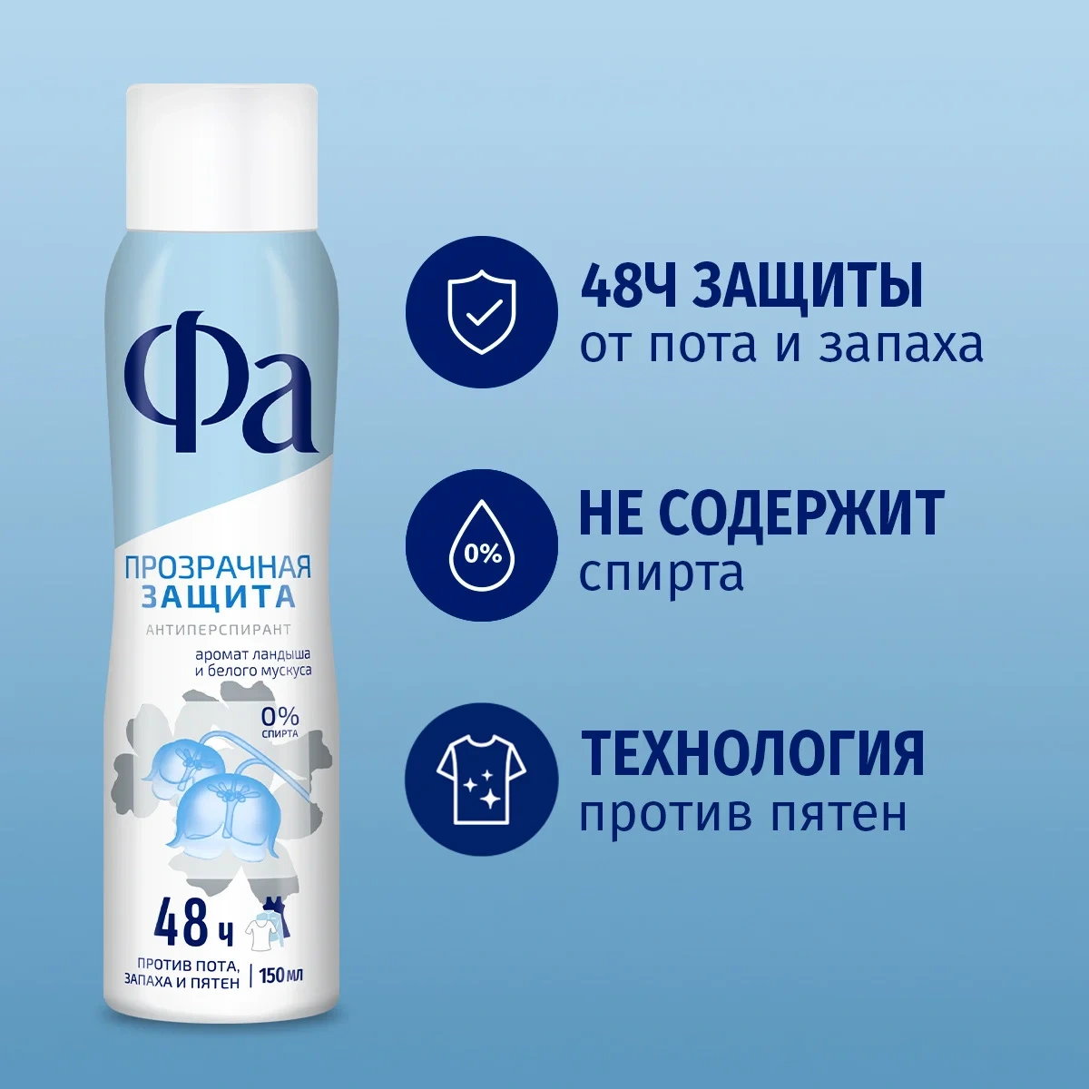 Дезодорант-антиперспирант Фа Прозрачная защита аэрозольный, 150мл