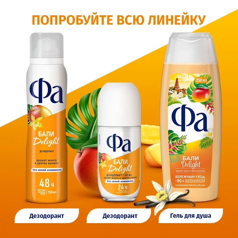 Дезодорант-антиперспирант Фа Ритмы Острова Бали Delight аромат манго и цветка ванили, 50мл