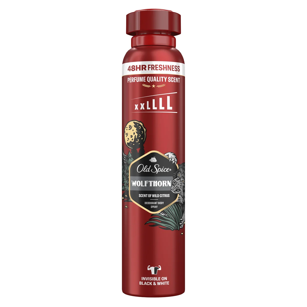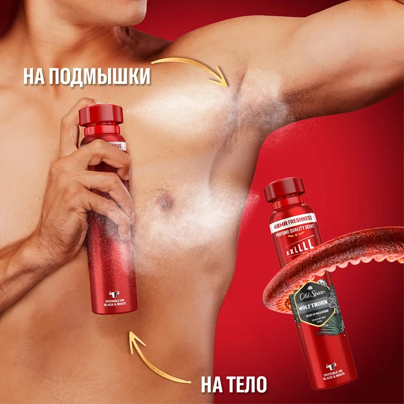 Хочешь избавиться от несвежих и асоциальных запахов, чтобы стать настоящим вожаком стаи? На помощь спешит мужской дезодорант-спрей Old Spice – дикий аромат настоящей волчьей уверенности в себе! Сила мужичайшего аромата дезодоранта-спрея Old Spice (Олд Спайс) Wolfthorn с нотами цитрусов и удачной охоты раскроет самые хищные стороны твоей натуры. С ним железобетонная стойкость аромата, защита от неприятного запаха и свежесть на весь день тебе обеспечены. Дезодорант-спрей Wolfthorn в XXL упаковке – это одни сплошные достоинства: целых 250 мл свежести, мощная формула без алюминия, которая может справиться с лавиной неприятного запаха и не оставляет пятен на одежде, а еще яркий аромат с терпкими тропическими нотками, который точно не оставит равнодушным никого в радиусе пары метров от тебя. Зарядись энергией Old Spice – попробуй гель для душа+шампунь 3в1 Wolfthorn, а затем используй дезодорант из этой же коллекции в форме спрея или стика, чтобы дичайшая свежесть была с тобой весь день! Преимущества: - Не оставляет пятен на одежде (и твоей репутации) - 48 часов свежести - Один пшик – весь день мужик - Без алюминия в составе формулы - Мужичайший аромат, который будет с тобой весь день. Хочешь избавиться от несвежих и асоциальных запахов, чтобы стать настоящим вожаком стаи? На помощь спешит мужской дезодорант-спрей Old Spice – дикий аромат настоящей волчьей уверенности в себе! Сила мужичайшего аромата дезодоранта-спрея Old Spice (Олд Спайс) Wolfthorn с нотами цитрусов и удачной охоты раскроет самые хищные стороны твоей натуры. С ним железобетонная стойкость аромата, защита от неприятного запаха и свежесть на весь день тебе обеспечены. Дезодорант-спрей Wolfthorn в XXL упаковке – это одни сплошные достоинства: целых 250 мл свежести, мощная формула без алюминия, которая может справиться с лавиной неприятного запаха и не оставляет пятен на одежде, а еще яркий аромат с терпкими тропическими нотками, который точно не оставит равнодушным никого в радиусе пары метров от тебя. Зарядись энергией Old Spice – попробуй гель для душа Wolfthorn, а затем используй дезодорант из этой же коллекции в форме спрея или стика, чтобы дичайшая свежесть была с тобой весь день!