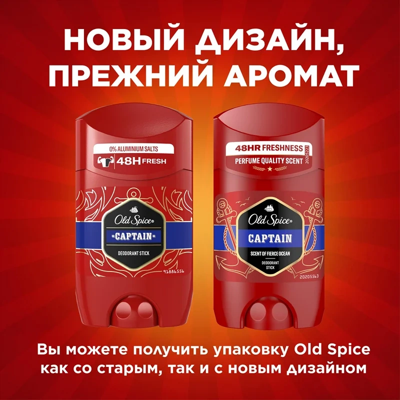 Представь, что мир, который ты жаждешь покорить, – это устрица. Так вот, мужской дезодорант-стик Old Spice (Олд Спайс) Captain – это нож, который поможет раскрыть створки ее раковины, секретное оружие, которое не знает неудач. Даже когда ты не покоряешь открытые моря, ты покоряешь помещения, наполняя их свежим чистым ароматом цитруса, сандалового дерева, соленых брызг океана и попутного ветра. Хочешь, чтобы твоя эскадра побеждала по всем фронтам? Проще простого – надо просто найти именно свой аромат! Дезодорант с синим стиком с легкостью вышибает неприятный запах и дарит свежесть на 48 ч, заряжая тебя капитанской решительностью, смелостью и отвагой. Дезодорант-стик Captain – никаких пятен на одежде, 0% алюминия в составе формулы и компактная упаковка 50 мл, которую удобно взять с собой. Зарядись энергией и мощью Old Spice с самого утра – попробуй гель для душа и шампунь 3в1 Captain, а затем используй дезодорант, чтобы потопить неприятный запах пота. Капитан, освежитесь, и полный вперед! Преимущества: - Синий стик c мощной эффективной формулой - Не оставляет пятен на одежде (и твоей репутации) - 48 часов свежести - Без алюминия в составе формулы - Мужичайший аромат, который будет с тобой весь день. Представь, что мир, который ты жаждешь покорить, – это устрица. Так вот, мужской дезодорант-стик Old Spice (Олд Спайс) Captain – это нож, который поможет раскрыть створки ее раковины, секретное оружие, которое не знает неудач. Даже когда ты не покоряешь открытые моря, ты покоряешь помещения, наполняя их свежим чистым ароматом цитруса, сандалового дерева, соленых брызг океана и попутного ветра. Хочешь, чтобы твоя эскадра побеждала по всем фронтам? Проще простого – надо просто найти именно свой аромат! Дезодорант с синим стиком с легкостью вышибает неприятный запах и дарит свежесть на 48 ч, заряжая тебя капитанской решительностью, смелостью и отвагой. Дезодорант-стик Captain – никаких пятен на одежде, 0% алюминия в составе формулы и компактная упаковка 50 мл, которую удобно взять с собой.