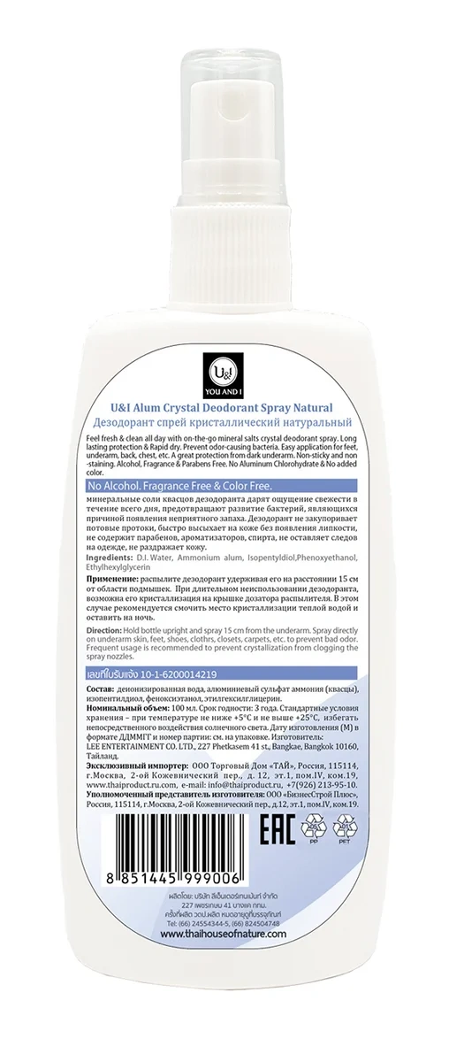 Дезодорант спрей кристаллический - натуральный - минеральные соли квасцов дезодоранта дарят ощущение свежести в течение всего дня, предотвращают развитие бактерий (Антибактериальный), являющихся причиной появления неприятного запаха. Дезодорант -- не закупоривает потовые протоки, чем очень подходит для людей, занимающихся спортом и просто тех кто ценит свое здоровье, быстро высыхает на коже без появления липкости, не содержит парабенов, ароматизаторов, спирта, не оставляет следов на одежде, не раздражает кожу. Устраняет раздражения, подходит для чувствительной кожи.