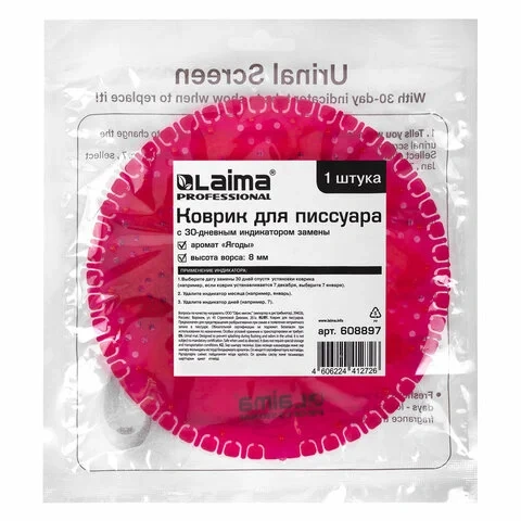 Дезодоратор коврик для писсуара красный, аромат Ягоды, LAIMA Professional, на 30 дней, 608897