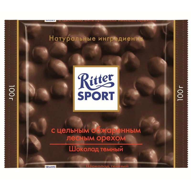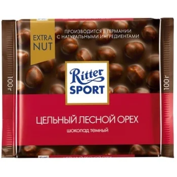 Шоколад Ritter Sport 100г с цельным лесным орехом, темный