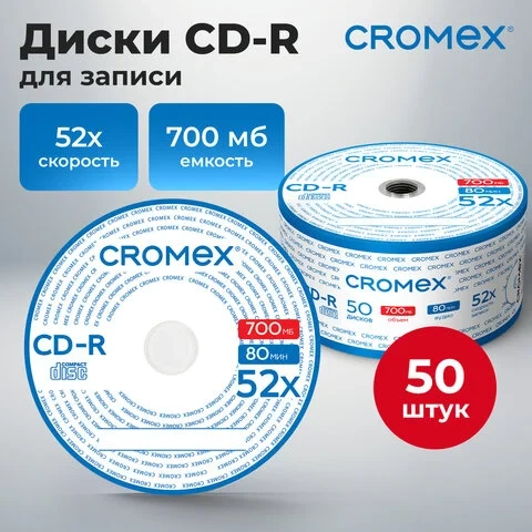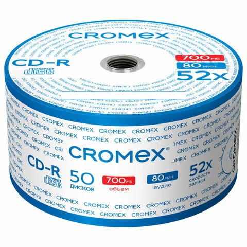 Диски CD-R CROMEX, 700 Mb, 52x, Bulk (термоусадка без шпиля), КОМПЛЕКТ 50 шт., 513773