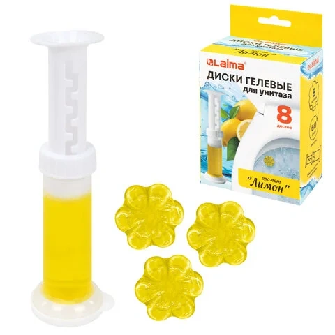 Диски гелевые, освежитель и очиститель для унитаза / писсуара, 8 дисков 44 г, LAIMA, 'Лимон', шприц,