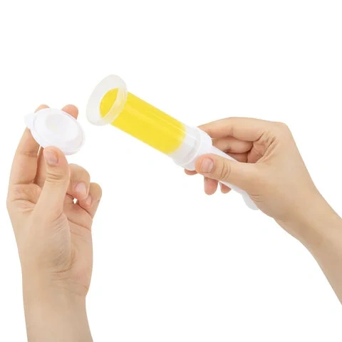 4. Приложите дозатор к внутренней стороне ободка унитаза в месте, где поток воды наиболее интенсивен, и нажмите до щелчка.