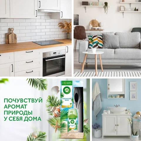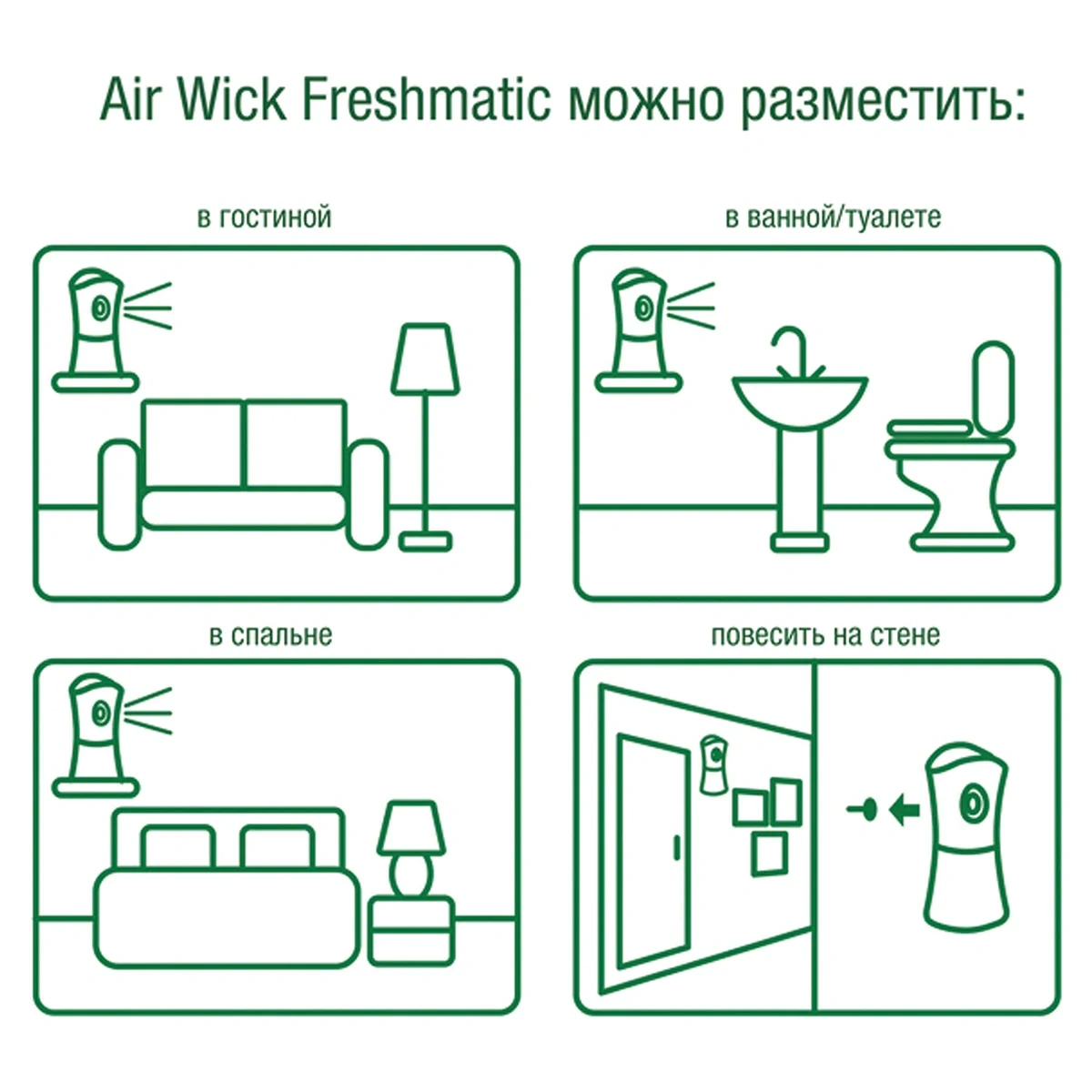 Автоматический распылитель освежителя воздуха AIRWICK Freshmatic серии Life Scents с освежителем воздуха в сменном аэрозольном баллоне 'Океанский бриз'. Самостоятельно распыляет аромат и эффективно устраняет любые неприятные запахи.