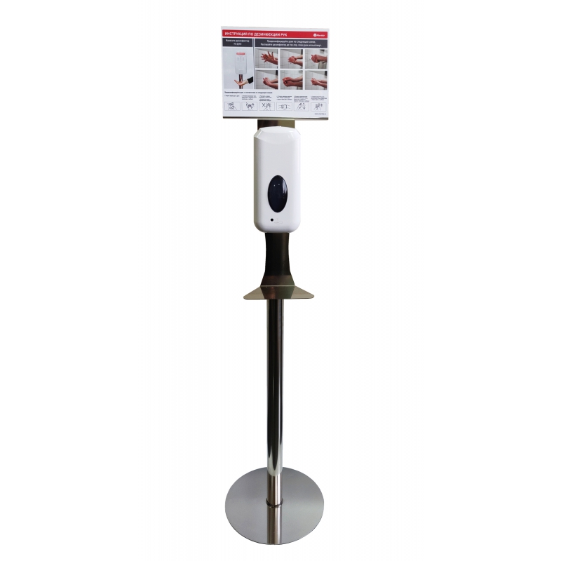 Универсальная мобильная стойка на колесах для дезинфекции рук в общественных местах для мгновенной бесконтактной обработки рук антисептиком.