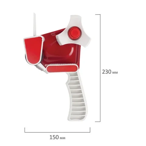 Предназначен для клейкой упаковочной ленты шириной до 50 мм. Винт для регулировки натяжения ленты предотвращает ее случайное разматывание. Прижимная пластина способствует непрерывному наклеиванию. Удобная пластиковая ручка светло-серого цвета. Корпус выполнен из металла в красном цвете. Упаковочная клейкая лента в комплект не входит. Размер - 230х150х55 мм. Вес - 450 г.