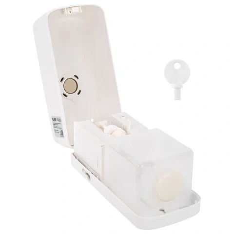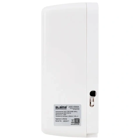 Объем – 1 л. Оснащен инфракрасным сенсором. Работает от четырех батареек LR6 АА. Также есть возможность подключения дозатора к сети переменного тока 220 V по средствам адаптера. Параметры адаптера: 6В, 1А, '-' снаружи, '+' внутри. Адаптер и батарейки в комплект не входят.