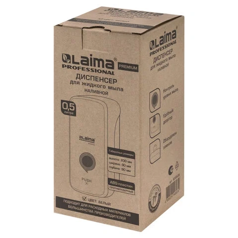 Диспенсер для мыла наливной Laima Premium 500мл, белый, пластик, 609508