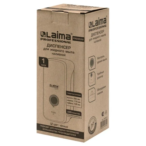 Диспенсер для мыла наливной Laima Premium Black 1л, черный, пластик, 609519