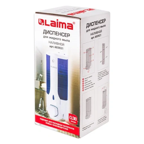 Диспенсер для мыла наливной Laima бело-синий, 380мл