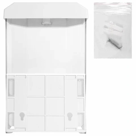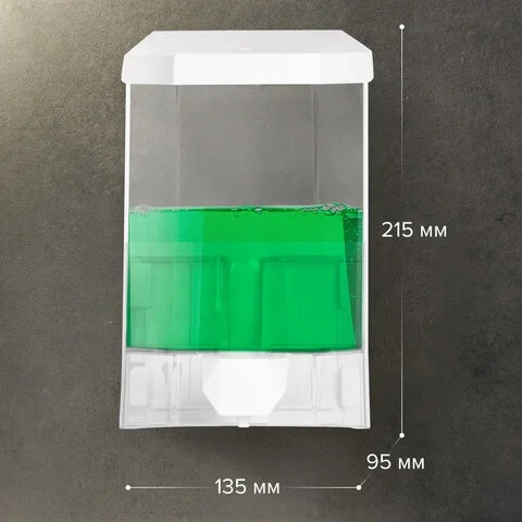 Дозатор из прозрачного пластика объемом 1 л обеспечивает высокую гигиеничность. Выдача мыла осуществляется экономичными порциями. Сочетается с расходными материалами других производителей. Имеется окно для контроля уровня мыла. Закрывается на пластиковый ключ. Размер – 215х135х95 см. Крепежные материалы в комплекте.