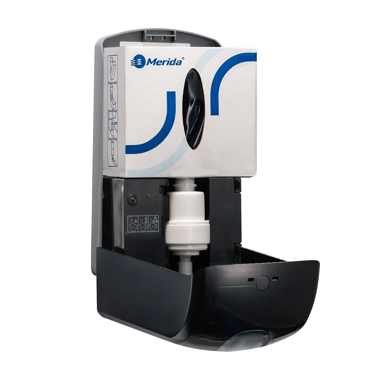 Сенсорный дозатор для наливного жидкого мыла MERIDA ONE CLICK (чёрный) Описание: Сенсорный дозатор для наливного жидкого мыла MERIDA ONE с системой CLICK в чёрном исполнении — это современное и эффективное решение для автоматического дозирования мыла в общественных местах. Система CLICK позволяет легко и быстро устанавливать и заменять картриджи с расходным материалом, обеспечивая удобство в обслуживании. Чёрный цвет добавляет элегантности и подходит для любого интерьера. Преимущества: Система CLICK для быстрой и лёгкой замены картриджей с мылом. Прочный ABS-пластик, устойчивый к механическим повреждениям и загрязнениям. Компактные размеры, идеально подходящие для использования в ограниченных пространствах. Эстетичный чёрный цвет, гармонично вписывающийся в интерьер. Удобный механизм дозирования для экономичного расходования мыла. Технические характеристики: Тип: Картриджный Материал: ABS-пластик Цвет: Чёрный Размеры (Д ? Ш ? В): 14,5 ? 8,5 ? 27,8 см Масса: 0,65 кг Вместимость: 1000 мл Тип расходного материала: Картриджи с жидким мылом Merida в ассортименте Уход: Регулярно очищайте поверхность с помощью протирочной салфетки СМ002 или MS031 и мягкого моющего средства PLOR. Не используйте абразивные чистящие средства, чтобы избежать повреждения пластикового покрытия.