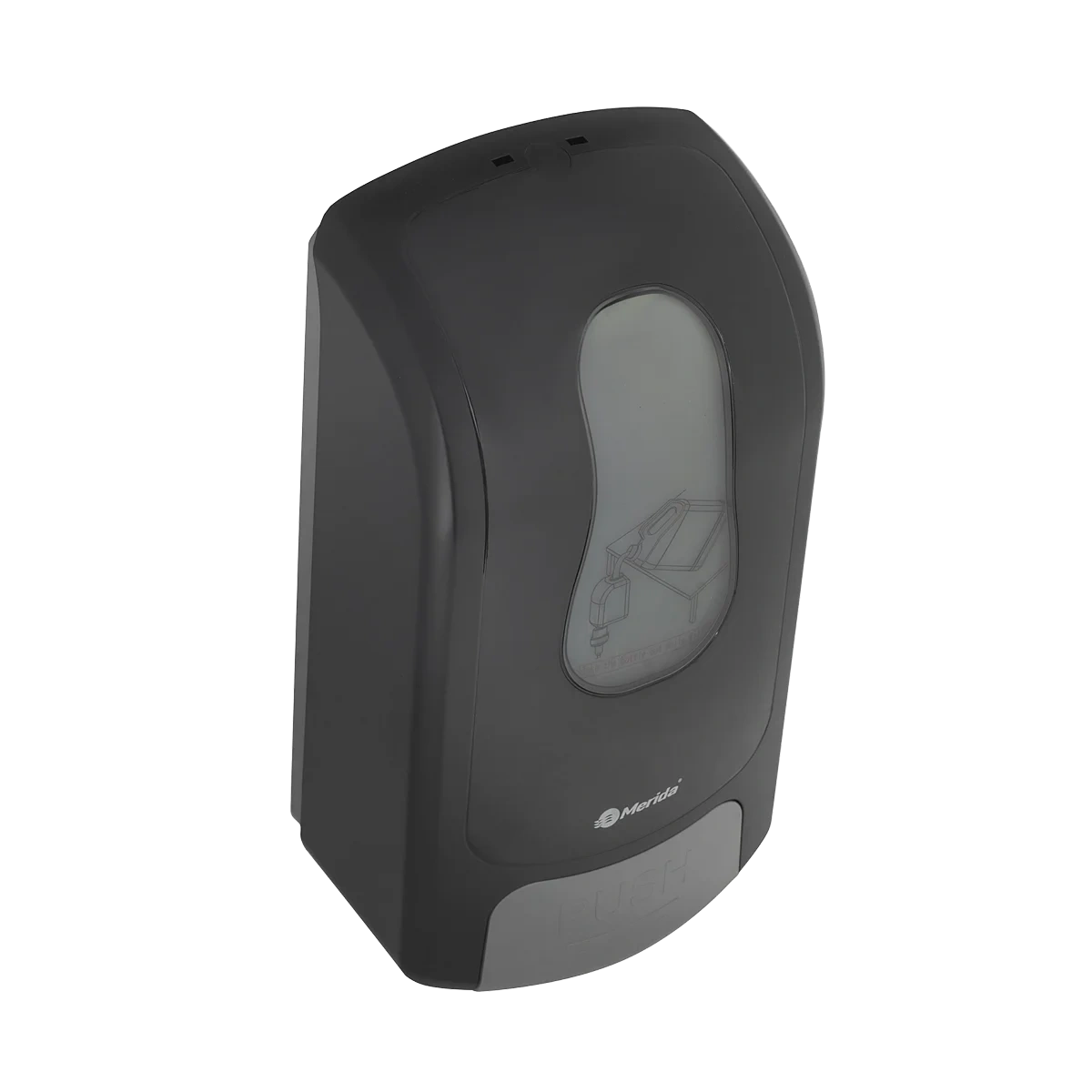 Дозатор наливного жидкого мыла MERIDA ONE обеспечивает эффективное и гигиеничное распределение мыла в общественных и частных помещениях. Изготовленный из высококачественного ABS-пластика, он сочетает прочность и современный дизайн, что делает его подходящим для любых интерьеров. Преимущества: Изготовлен из прочного ABS-пластика, обеспечивающего долгий срок службы. Удобный механизм дозирования для экономного расходования мыла. Эстетичный черный цвет, подходящий для современных интерьеров. Простота установки и обслуживания. Технические характеристики: Тип: Наливной Материал: ABS-пластик Цвет: Черный Размеры (Д ? Ш ? В): 14,3 ? 8,5 ? 27,5 см Масса: 0,65 кг Вместимость: 1000 мл Тип расходного материала: Жидкое мыло Merida в ассортименте Уход: Регулярно очищайте поверхность с помощью протирочной салфетки СМ002 или MS031 и мягкого моющего средства PLOR или CEMO. Не используйте абразивные чистящие средства, чтобы избежать повреждения пластикового покрытия.