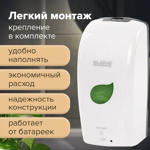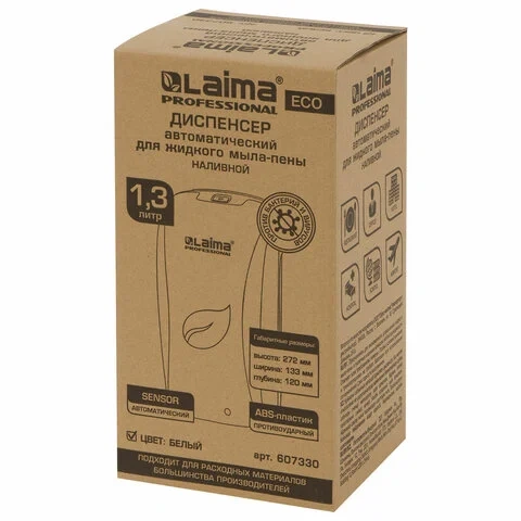 Диспенсер для пены наливной Laima Eco 1.3л, белый, сенсорный, 607330