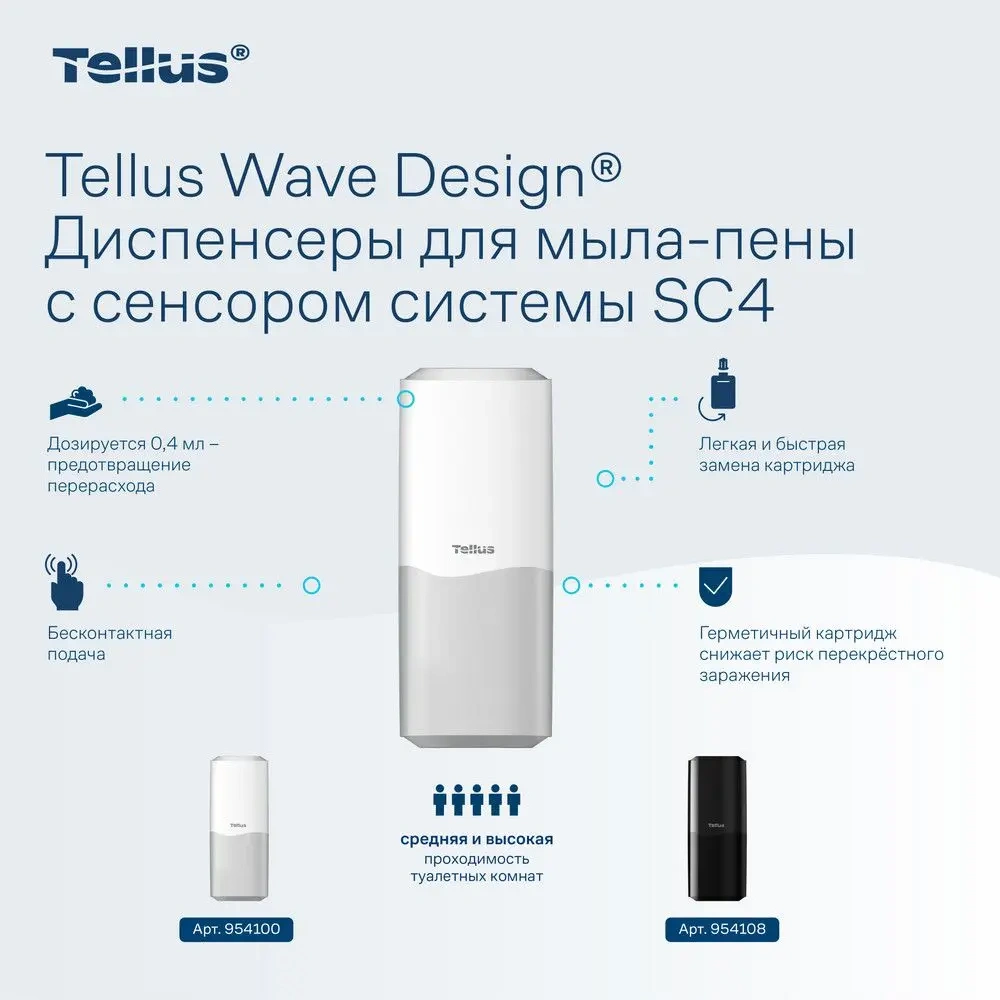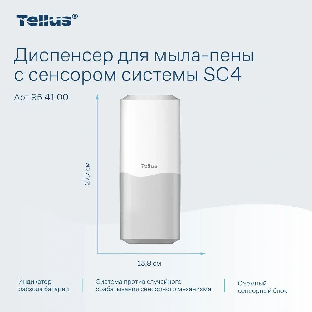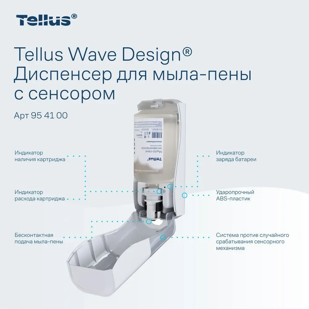 Автоматический дозатор для мыла-пены Tellus – это современное решение для поддержания высокого уровня гигиены в общественных и коммерческих помещениях. Его стильный белый корпус из ударопрочного ABS-пластика идеально впишется в любой интерьер, будь то офис, гостиница, ресторан или медицинское учреждение.