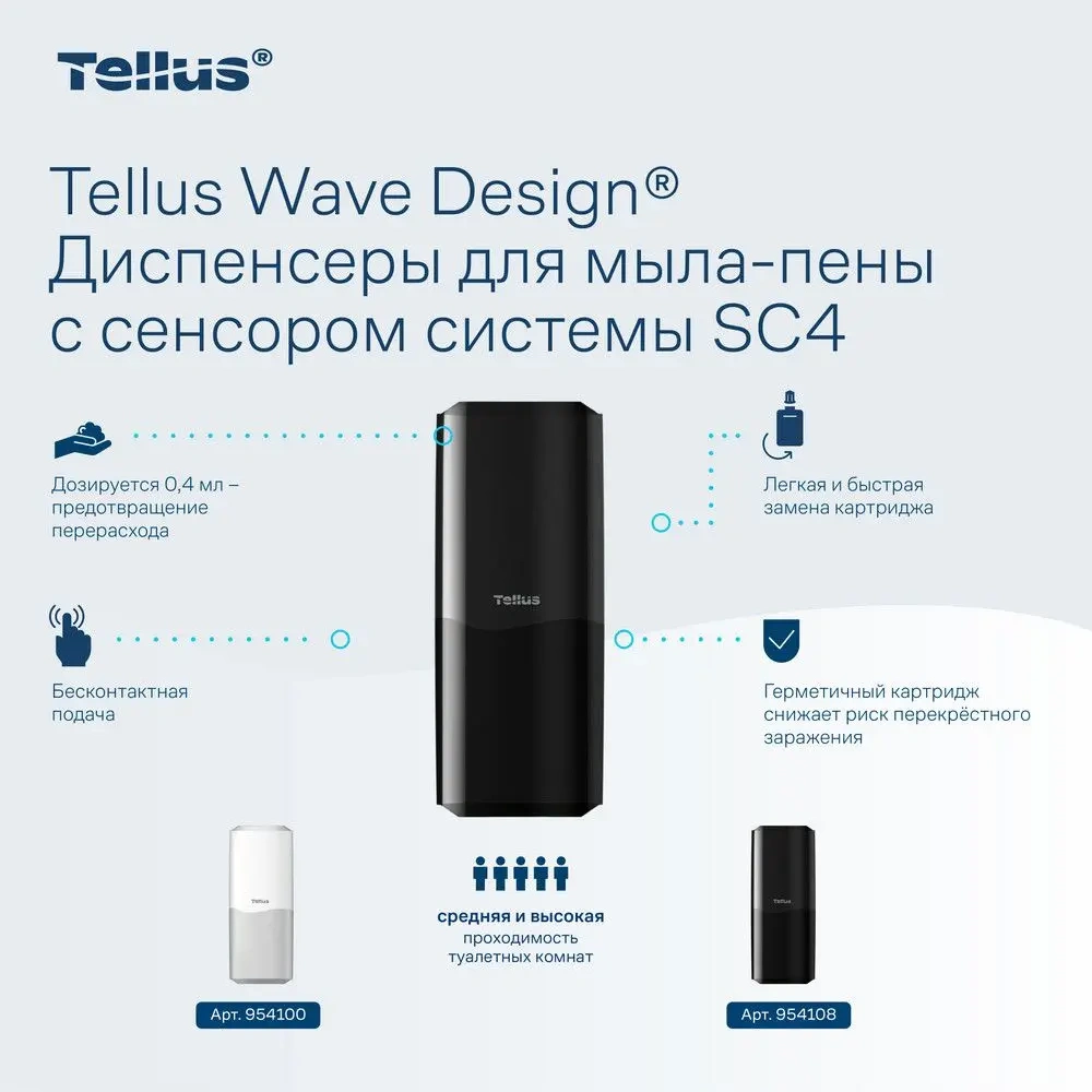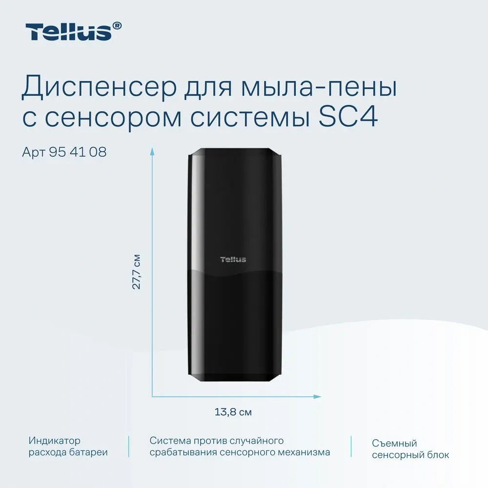 Диспенсер для мыла в картриджах Tellus (tork) S4, 954108, сенсорный, черный