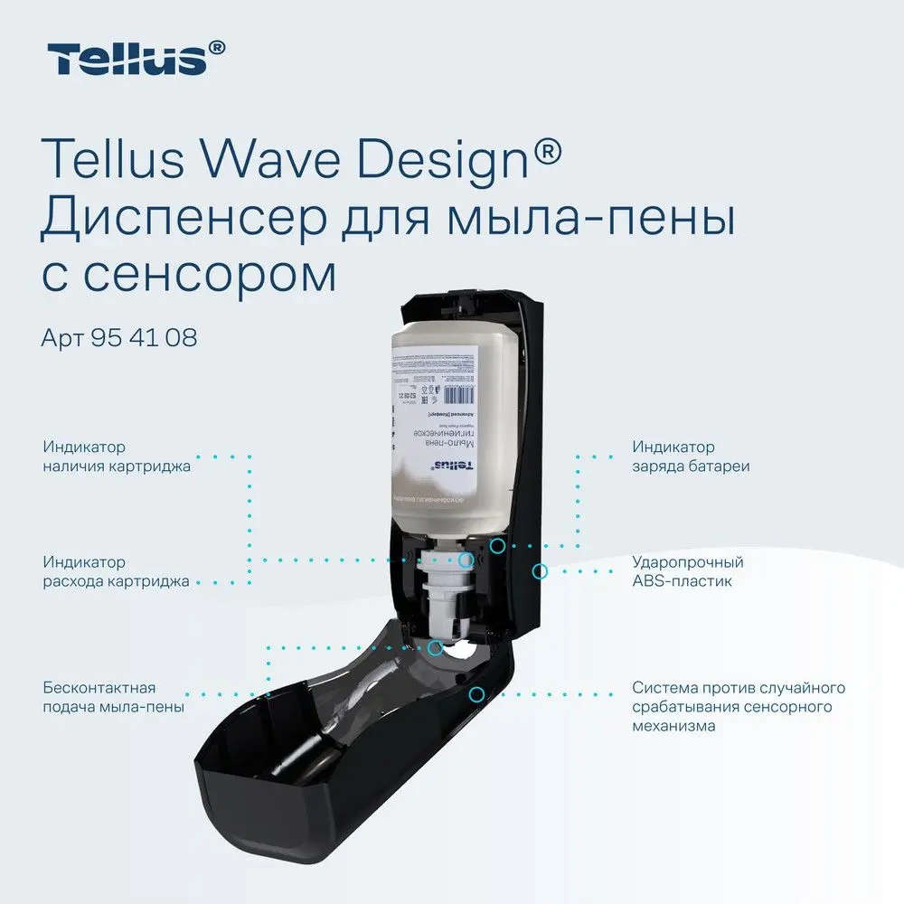 Автоматический дозатор для мыла-пены Tellus – это современное решение для поддержания высокого уровня гигиены в общественных и коммерческих помещениях. Его стильный белый корпус из ударопрочного ABS-пластика идеально впишется в любой интерьер, будь то офис, гостиница, ресторан или медицинское учреждение.