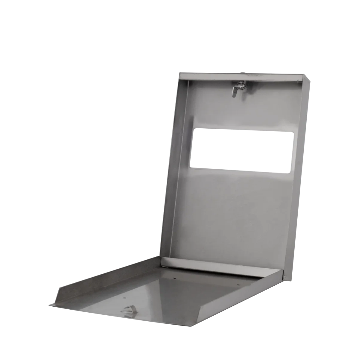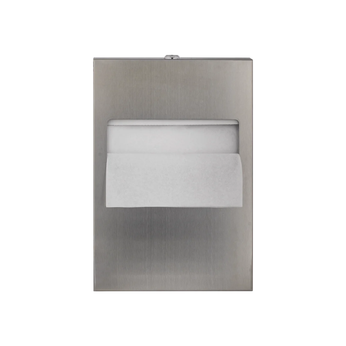 Держатель туалетных подкладок линии оборудования Merida Stella Classic изготовлен из матового металла 201 марки. Заправляется упаковкой туалетных подкладок 100шт. Имеет удобное окошко для подачи туалетных подкладок. Снабжен прочным стальным барабанным замком и закрывается на ключ. Имеет удобное окошко для контроля наличия расходных материалов.