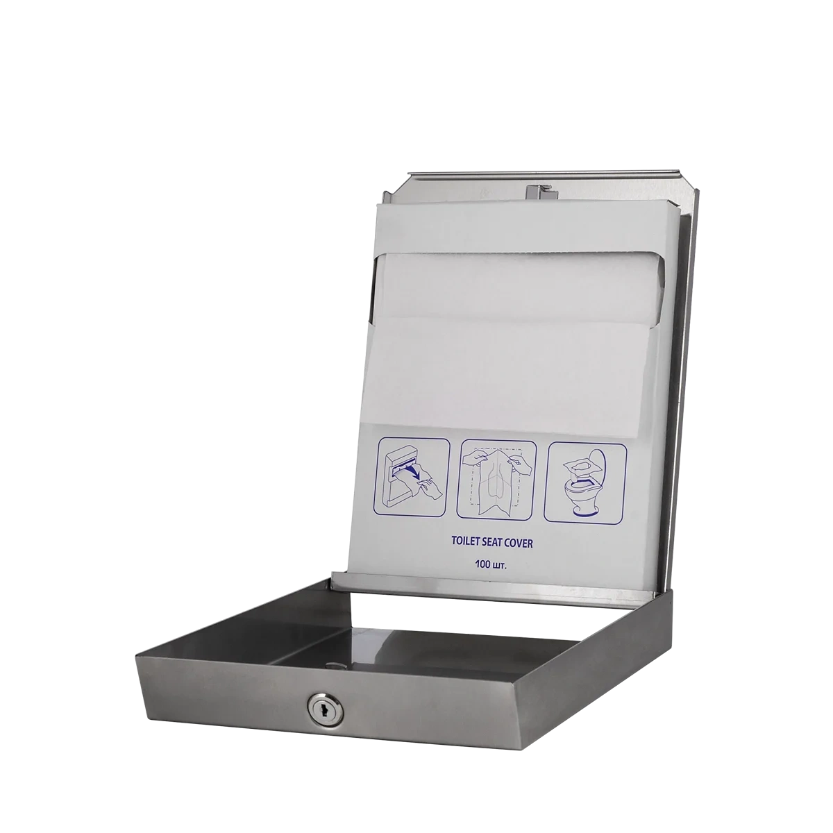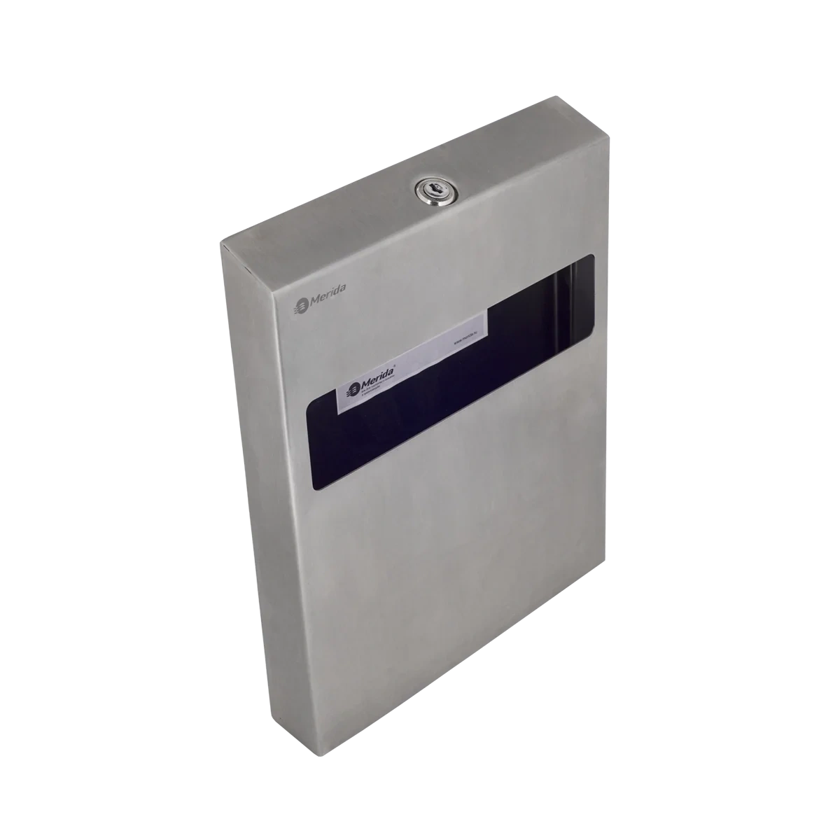 Держатель туалетных подкладок металлический 'MERIDA STELLA R' (матовый) Устройство для выдачи подкладок на сиденье унитаза, предназначенное для повышения гигиеничности в общественных туалетах. Диспенсер заполняется упаковкой туалетных подкладок на 100 шт. Удобное окошко позволяет контролировать наличие расходных материалов, упрощая процесс обслуживания. Компактный дизайн подходит для подкладок, сложенных ?. Преимущества: Удобство использования: Окошко для контроля наличия подкладок позволяет своевременно реагировать на необходимость их замены. Эстетика и долговечность: Матовая металлическая поверхность придает устройству стильный вид и предотвращает появление отпечатков пальцев. Практичность: Компактные размеры делают диспенсер идеальным для установки в различных общественных местах. Технические характеристики: Размеры: ширина 22 см / высота 28,5 см / глубина 4 см Заполнение: Упаковка на 100 подкладок Тип сложения: ? Комплектующие: Подкладки туалетные MERIDA ? сложения в ассортименте Уход: Для регулярной гигиены поверхности используйте очиститель-полироль CEMO. Нанесите средство на протирочную салфетку CM002 и аккуратно протрите поверхность для поддержания чистоты и сохранения внешнего вида.