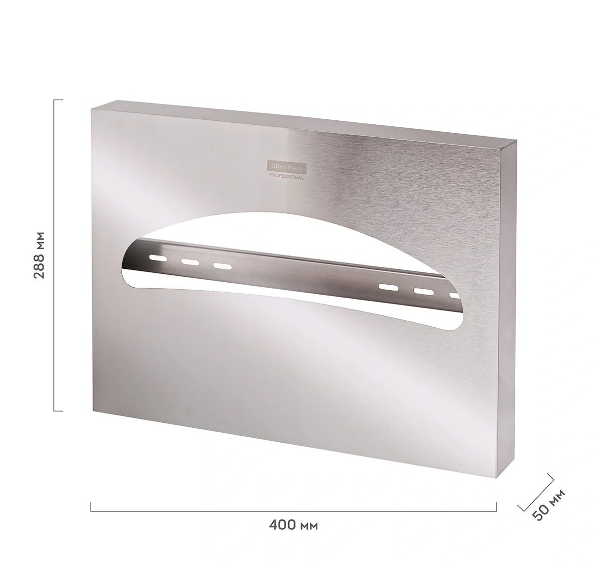 Диспенсер для покрытий на унитаз OfficeClean Professional, нержавеющая сталь – стильный, прочный, простой в использовании товар. Отличается компактностью и высокой вместительностью. Диспенсер станет незаменимым помощником в обеспечении защиты от микробов и бактерий, за счет строгого классического стиля впишется в любой интерьер. Металлический корпус станет оптимальным решением для туалетных комнат с большой проходимостью.