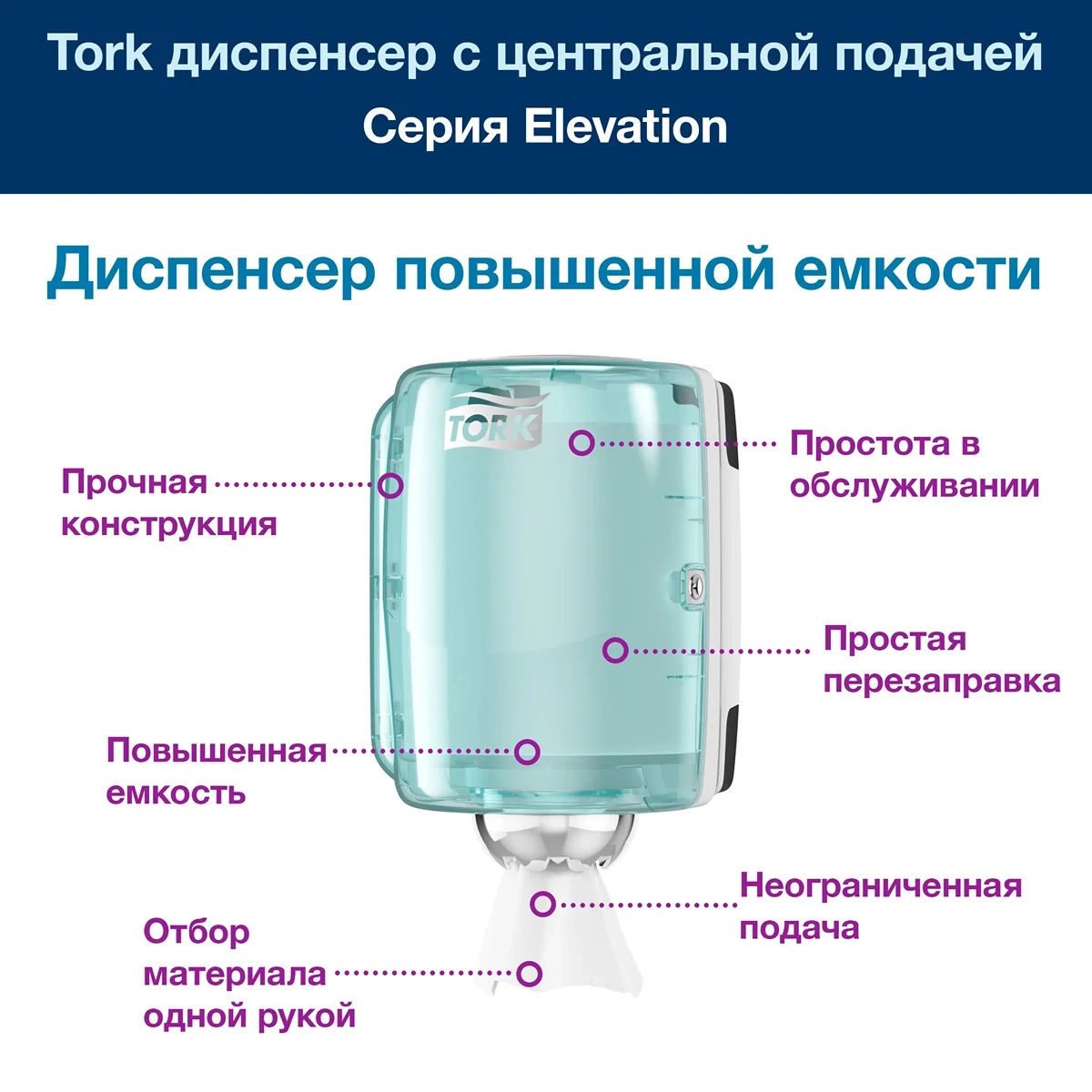Tork диспенсер c центральной вытяжкой серии Performance — отлично подходит для тех случаев, когда необходима и протирка рук, и уборка поверхностей. Обеспечивает быструю протирку поверхностей благодаря функции неограниченной подачи, которая позволяет отбирать необходимое для выполнения работы количество листов. Tork Performance — новое поколение диспенсеров, созданных для эффективной уборки. Правильное сочетание диспенсеров и протирочных материалов позволяет повысить производительность, снижая при этом общие эксплуатационные затраты. - Более гигиеничное решение благодаря удобству в очистке - Универсальный запорный механизм предупреждает несанкционированное использование - Отбор листов одной рукой гарантирует простоту в использовании - Бесконтактный отбор — гибкость и контроль за перекрестным заражением