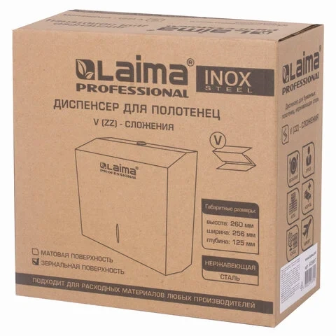 Диспенсер для полотенец листовых Laima Inox H3, зеркальный, металлический, 605697