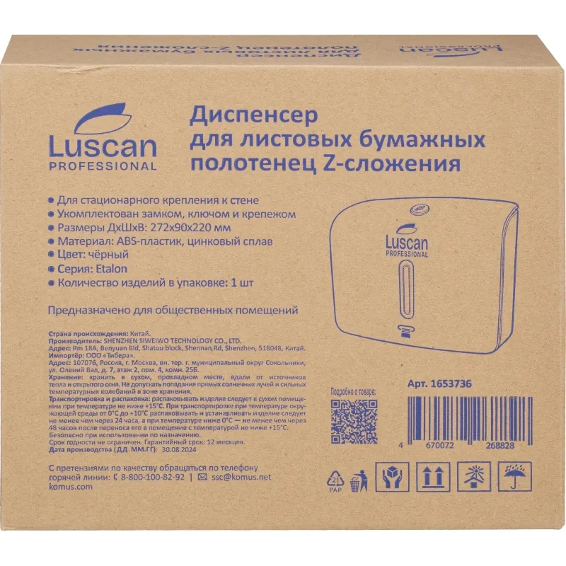 Диспенсер для бумажных полотенец Z-сложения Luscan Professional Etalon отлично подходит для использования в местах с высокой проходимостью таких, как туалетные комнаты в ресторанах, офисах, торговых центрах, аэропортах, железнодорожных вокзалах и т. д. Корпус диспенсера изготовлен из прочного ABS-пластика. Диспенсер обеспечивает высокий уровень гигиены и комфорта за счет того, что расходный материал находится внутри корпуса и посетитель дотрагивается только до того бумажного полотенца, которым будет пользоваться. Благодаря стильному и ультратонкому дизайну подходит для любых туалетных комнат. Есть уровнеметр для быстрого монтажа и окошко для контроля за остатком расходного материала. Цвет: черный. Диспенсерная система: Н2. Вид расходных материалов: листовой. Вид крепления: настенное. Страна-изготовитель: Китай. Гарантийный срок работы: 1 год.