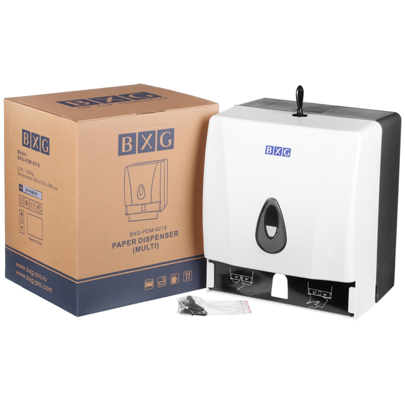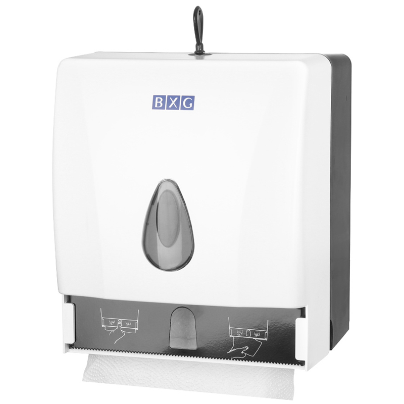 Диспенсер для полотенец листовых и рулонных BXG PDM-8218 (V-сл.), ABS-пластик, механический, белый
