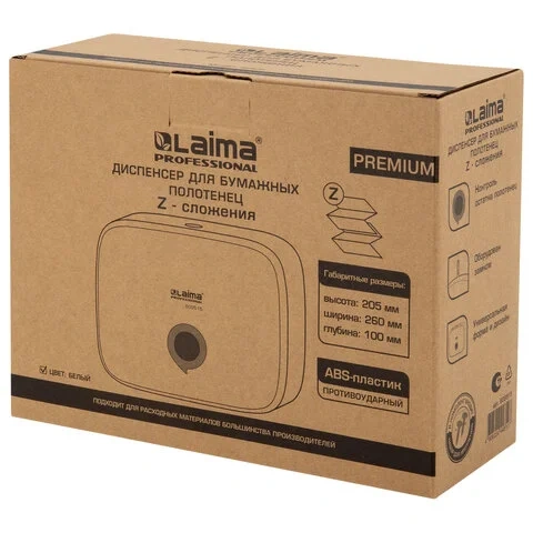Диспенсер для полотенец листовых Laima Premium белый, пластик, 609515