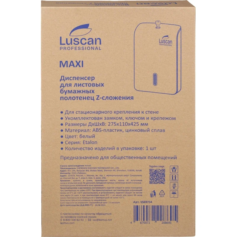 Диспенсер для бумажных полотенец Z-сложения Luscan Professional Etalon maxi отлично подходит для использования в местах с высокой проходимостью таких, как туалетные комнаты в ресторанах, офисах, торговых центрах, аэропортах, железнодорожных вокзалах и т. д.