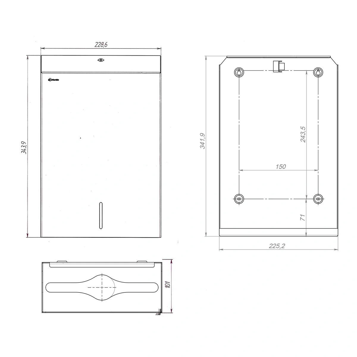 Полотенцедержатель для отдельных бумажных полотенец Z-сложения металлический 'MERIDA STELLA R' MAXI (белый) Полотенцедержатель 'MERIDA STELLA R' MAXI предназначен для отдельных бумажных полотенец Z-сложения. Изготовленный из нержавеющей стали AISI 304 толщиной 1 мм, он обеспечивает надежность и долговечность. Диспенсер вмещает 500 полотенец, что позволяет сократить частоту пополнения. Стильное зеркальное полированное покрытие придает ему современный вид и легко вписывается в любой интерьер. Преимущества: Вместимость 500 полотенец позволяет реже пополнять диспенсер, экономя время персонала. Зеркальное полированное покрытие добавляет элегантности и легко чистится. Российское производство. Корпус из нержавеющей стали AISI 304 толщиной 1 мм гарантирует долговечность и прочность. Технические характеристики: Материал: Нержавеющая сталь AISI 304 Цвет: Полированный Размеры (Д ? Ш ? В): 38 ? 26,5 ? 12 см Масса: 2,4 кг Тип расходного материала: Бумажные полотенца Z-сложения Вместимость: 500 Уход: Для регулярной гигиены поверхности используйте очиститель-полироль CEMO. Нанесите средство на протирочную салфетку CM002 и аккуратно протрите поверхность для поддержания чистоты и сохранения внешнего вида.