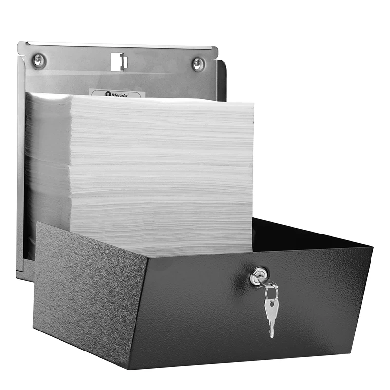 Диспенсер для отдельных бумажных полотенец металлический 'MERIDA STELLA R' MAXI (BLACK) Диспенсер для отдельных бумажных полотенец 'MERIDA STELLA R' MAXI выполнен из нержавеющей стали AISI 304 толщиной 1 мм и покрыт порошковой черной краской. Он является идеальным решением для общественных и коммерческих помещений. Современный и стильный дизайн делает его подходящим для различных интерьеров. Диспенсер вмещает 500 полотенец, что обеспечивает удобство использования и снижает частоту дозаправки. Преимущества: Вместимость 500 полотенец позволяет реже пополнять диспенсер, что экономит время персонала. Порошковое покрытие обеспечивает защиту от механических повреждений и коррозии. Стильный черный цвет гармонично вписывается в любой интерьер. Российское производство. Корпус из нержавеющей стали AISI 304 толщиной 1 мм обеспечивает долговечность и прочность. Технические характеристики: Материал: Нержавеющая сталь AISI 304 Цвет: Черный Размеры (Д ? Ш ? В): 31 ? 32 ? 14 см Масса: 2,35 кг Уход: Для регулярной гигиены поверхности используйте очиститель-полироль CEMO. Нанесите средство на протирочную салфетку CM002 и аккуратно протрите поверхность для поддержания чистоты и сохранения внешнего вида.
