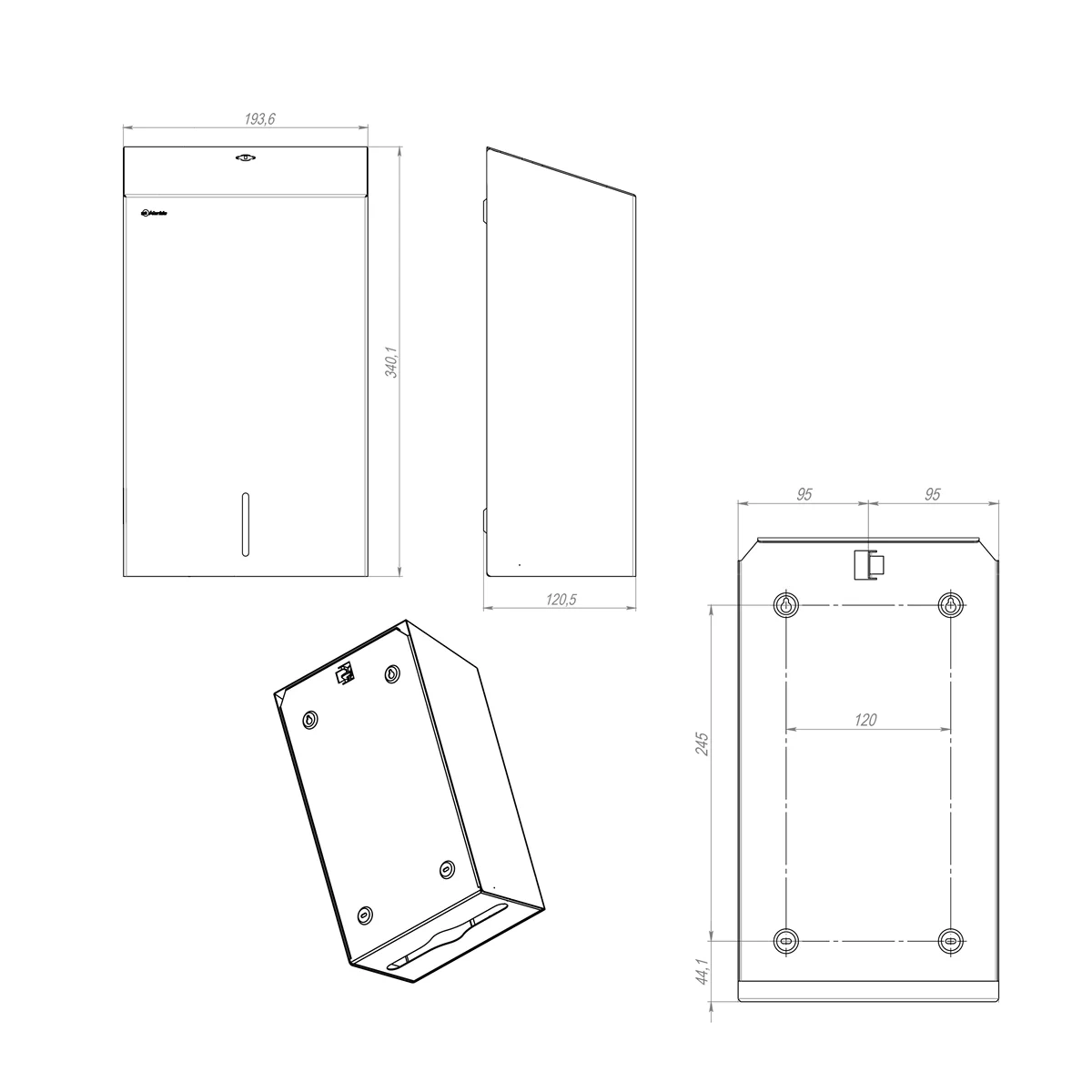 Диспенсер для бумажных полотенец V-сложения MERIDA STELLA R изготовлен из матовой нержавеющей стали AISI 304 толщиной 1 мм, что обеспечивает долговечность и стойкость к коррозии. Он оснащен прочным стальным барабанным замком, заподлицо с поверхностью устройства, и сварными соединениями боковых стенок, которые зашлифованы, образуя гладкую поверхность. Удобное окошко позволяет контролировать количество расходных материалов, а настенное крепление обеспечивает стабильность и надежность. Вместимость: 1 слой: 500 листов 2 слоя: 400 листов Этот диспенсер является отличным выбором для ванных и туалетных комнат благодаря своей коррозионной стойкости и современному, лаконичному дизайну. Преимущества: Прочный корпус из нержавеющей стали Защита от ржавчины и долговечность Простота в обслуживании и замене полотенец Удобное окошко для контроля количества расходных материалов Уход: Для регулярной гигиены поверхности используйте очиститель-полироль CEMO. Нанесите средство на протирочную салфетку CM002 и аккуратно протрите поверхность для поддержания чистоты и сохранения внешнего вида.