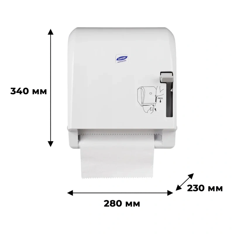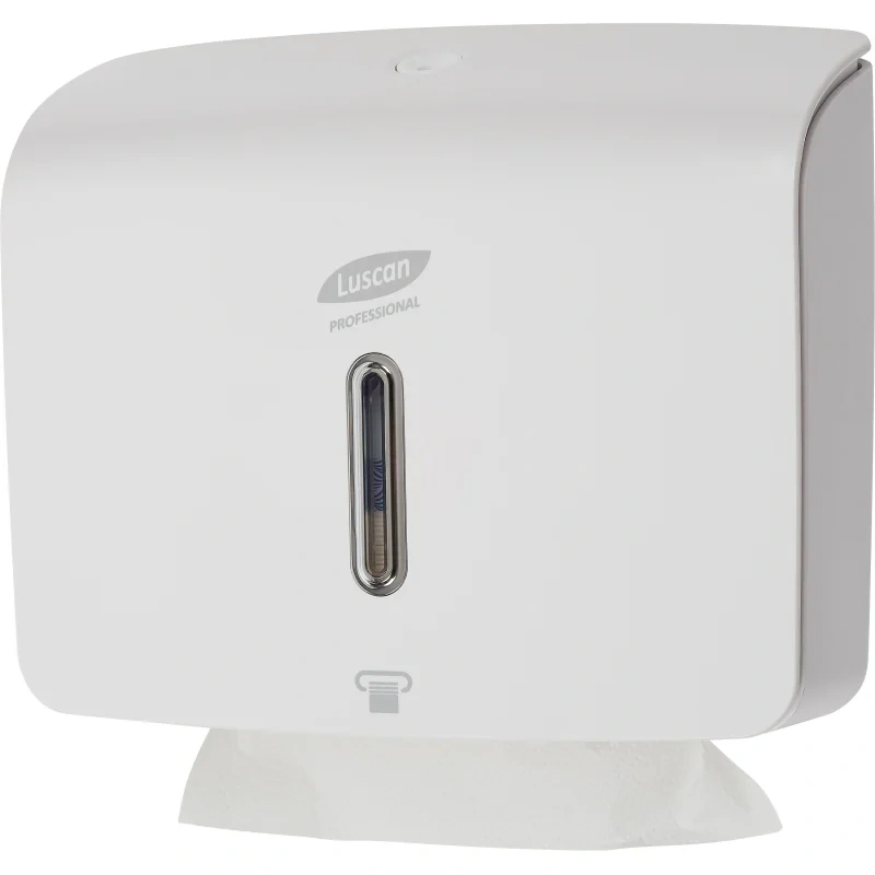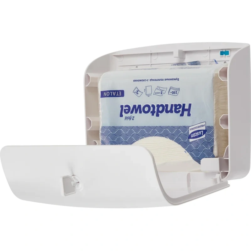 Диспенсер позволяет применять листовые бумажные полотенца любого типа сложения V, Z, W, M, C и вмещает до 3 пачек полотенец (400-600 листов). Специальное смотровое окно обеспечивает визуальный контроль расхода для своевременного обслуживания.