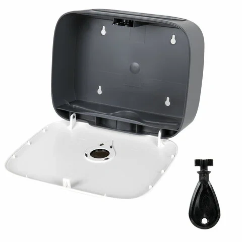Антивандальный корпус изготовлен из ударопрочного ABS-пластика. Диспенсер обеспечивает высокий уровень гигиены и комфортную подачу полотенец. Имеется окошко для контроля остатка полотенец. Сочетается с расходными материалами других производителей. Оборудован самозахлопывающимся замком с ключом. В комплект входят крепежные материалы для установки.