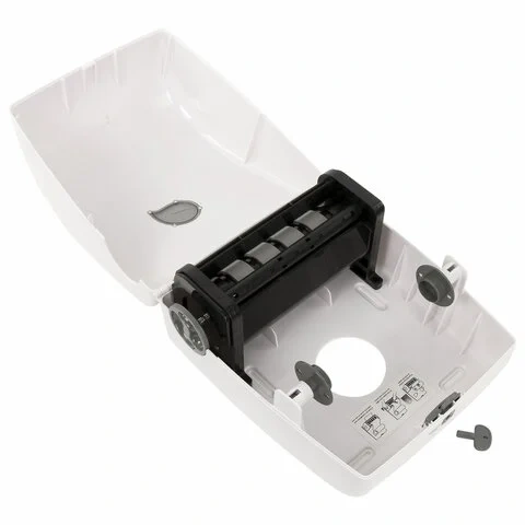 Корпус изготовлен из ударопрочного ABS-пластика. Предназначен для экономичной выдачи бумажных полотенец в рулонах. Позволяет использовать один рулон полотенец системы H1. Обеспечивает высокий уровень гигиены. Сочетается с расходными материалами других производителей. Тип закрывания - пластиковый ключ. Размер - 340х300х220 мм.